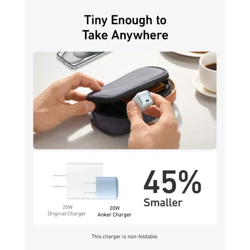 The Anker Nano 511 (Model A2637) is a super-compact, high-efficiency USB‑C wall adapter that packs 20 W of power into a tiny 1.16 × 1.16 × 1.18 inch frame. Thanks to its GaN (Gallium Nitride) technology, it stays cool and efficient despite its high power density, making fast charging quick and safe. It supports two main output levels — 5V ⎓ 3A and 9V ⎓ 2.22A — allowing it to deliver optimized charging for a wide variety of devices, especially fast-charging iPhones. Anker integrates its ActiveShield™ safety system in this charger: a dynamic temperature sensor actively monitors heat, and a power‑tuner chip adjusts output to keep things safe. Weighing around 50 g, it's lightweight and travel-friendly. It also supports a broad input voltage range of 100–240V, making it usable globally for travel. Despite its compact size, it's powerful and safe enough for daily fast charging.