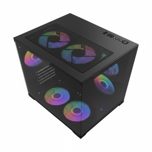 MaxGreen Bright Wave F7 Mid Tower M-ATX Gaming Casing With 7x ARGB Fan (Black)
