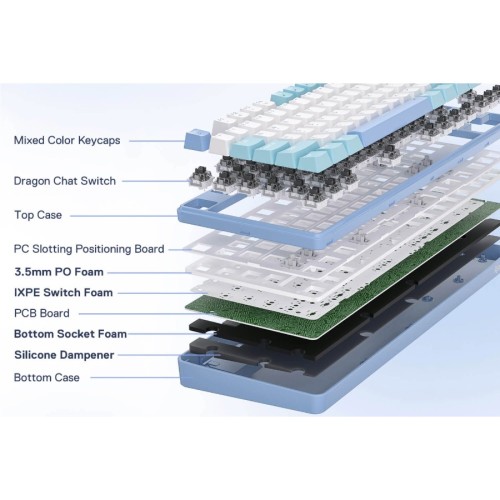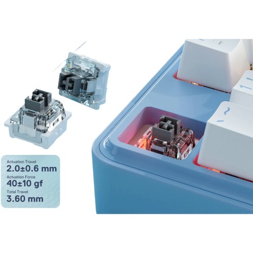 | Others | Anti-Ghosting: Full N-Key rollover Hot-swappable Red Mechanical Switches (Linear) Keycaps: Double-shot PBT Sound Dampening: Multiple internal foam layers Mount Type: Gasket-mounted Layout: 80% (87 keys) |