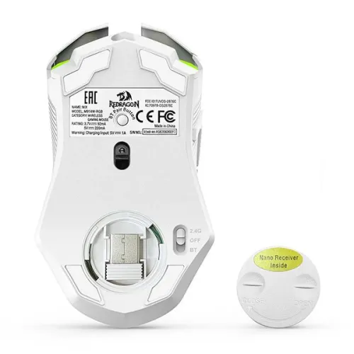 | Others | Type-C detachable cable for charging and connection Ultra-fast wireless technology without delayed response 9 customized buttons and independent fire button RGB backlight with programmed patterns Redragon software to assign custom macro and shortcut commands to the buttons |