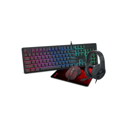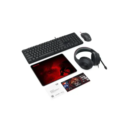 Dominate your gameplay with the Redragon 4-in-1 Ultimate Gaming Combo, engineered for gamers who want reliability, performance, and style in one powerful package. As the official distributor, we bring you a premium bundle that includes a full-size RGB keyboard, a precision gaming mouse, a multi-platform headset, and a durable mousepad making it the perfect all-in-one upgrade for your battle station. RGB Gaming Keyboard Built for both comfort and control, the full-size keyboard features responsive keys and vibrant multicolor lighting. The high-quality ABS keycaps deliver long-lasting durability, while the 12 multimedia keys offer quick access for music, volume, and more ideal for both gaming and daily use. Gaming Mouse with 4-Level DPI The included Redragon gaming mouse is equipped with the reliable Pixart 3168 optical sensor, giving you smooth tracking and accurate movements. With adjustable DPI levels up to 3200 and a fast polling rate, it provides the speed you need for competitive gameplay. The 6 programmable buttons and TEFLON glide pads offer comfort and control during intense action. Gaming Headset Stay fully immersed with crystal-clear audio delivered by powerful 40mm drivers. The noise-cancelling omni-directional microphone captures your voice clearly, making it perfect for team communication. Lightweight, comfortable, and compatible with PC, Laptop, Mac, PlayStation, Xbox One, Nintendo Switch, and more this headset is built for every gamer. Anti-Slip, Waterproof Mousepad The optimized surface ensures smooth tracking for all sensor types, while the anti-slip rubber base keeps everything stable during fast movements. It’s washable, durable, and sized perfectly to fit any desk setup.