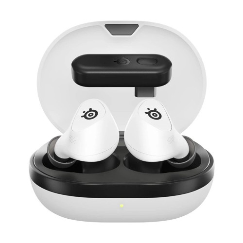 The SteelSeries Arctis GameBuds White Earbuds is a cutting-edge solution for gamers seeking superior sound quality and versatility. Engineered with Neodymium Magnetic Drivers, these SteelSeries Arctis GameBuds deliver a wide frequency response of 20–20,000 Hz, ensuring crystal-clear audio. With support for 360° spatial audio, including Tempest 3D and Sonar Spatial Audio, the SteelSeries GameBuds provide an immersive gaming experience on PlayStation, PC, and mobile devices. The advanced 4-mic Hybrid Active Noise Cancellation (ANC) technology minimizes distractions, while the Transparency Mode keeps you connected to your surroundings. Equipped with WearSense auto-pause, these earbuds intelligently pause audio when removed. The SteelSeries Arctis GameBuds Earbuds offer seamless dual connectivity with 2.4GHz Gaming Wireless and Bluetooth 5.3, enabling quick switching between devices. With up to 10 hours of battery life per charge and an additional 30 hours from the Qi-enabled charging case, the SteelSeries Arctis GameBuds are ideal for extended gaming marathons. USB-C fast charging provides 3 hours of playtime with just a 15-minute charge, while the earbuds' IP55 rating ensures resistance to water, dust, and dirt. Additionally, the SteelSeries GameBuds are customizable through the Arctis Companion App, which includes over 100 PS5 audio presets for personalized sound settings.
