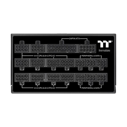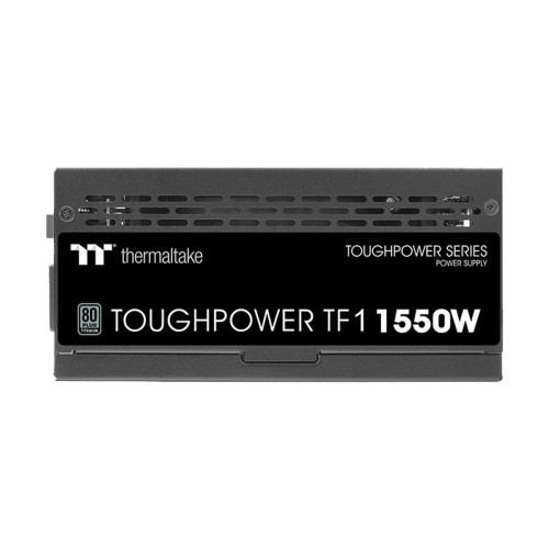 The Thermaltake Toughpower TF1 1550W 80+ Titanium TT Premium Edition Full Modular Power Supply is a high-performance and reliable power supply unit (PSU) designed to meet the demanding power requirements of modern gaming PCs, workstations, and high-end computing systems. With a maximum wattage of 1550W and peak power of 1850W, this PSU provides ample power to handle even the most power-hungry components and configurations.The 80 PLUS Titanium certification ensures exceptional energy efficiency, with the PSU achieving up to 94% efficiency at typical load levels. This means reduced power consumption, lower heat generation, and ultimately, lower energy bills, making it an environmentally friendly and cost-effective choice for power-hungry systems.The PSU features a large 14cm PWM fan that intelligently adjusts its speed according to the system's heat output, providing efficient cooling while maintaining quiet operation. This ensures optimal thermal performance even during intense workloads or gaming sessions.Safety is a top priority with this power supply as it holds various safety approvals, including CE, cTUVus, TÜV, FCC, BSMI, EAC, and CCC, guaranteeing compliance with international safety and environmental standards. The active PFC (Power Factor Correction) enhances power efficiency and reduces energy wastage, further solidifying its position as a premium and eco-conscious PSU.The full modular design allows for a clean and organized installation as only the necessary cables need to be connected. This ensures better airflow within the case, reducing cable clutter and improving overall system aesthetics.The PSU boasts an impressive MTBF (Mean Time Between Failures) of 120,000 hours, indicating its exceptional reliability and longevity. This means that the PSU is built to withstand prolonged and continuous use, providing peace of mind to users who rely on their systems for critical tasks.The operating temperature range of 0°C to +50°C and the storage temperature range of -20°C to +70°C make it suitable for use in various environmental conditions. Furthermore, the wide input voltage range of 100V to 240V and the frequency range of 47Hz to 63Hz ensure global compatibility and versatility.The Thermaltake Toughpower TF1 1550W 80+ Titanium TT Premium Edition Full ModularPower Supply comes with eight PCIe 6+2Pin connectors, making it ideal for high-end multi-GPU configurations. Its physical dimensions of 150mm x 86mm x 180mm and a weight of 300 grams allow for easy installation in most PC cases.