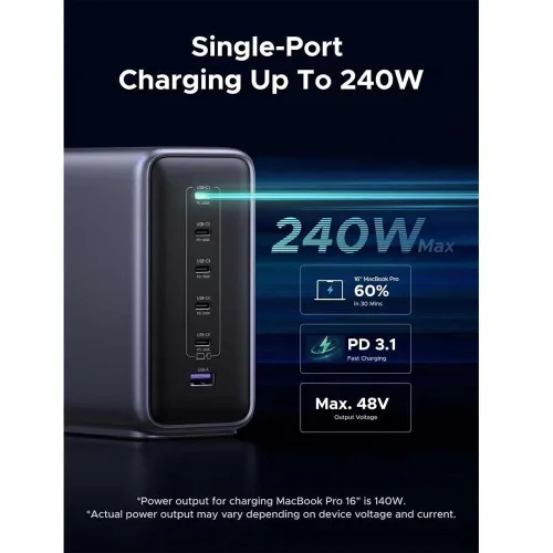 - Single USB‑C port delivers up to 240W.
