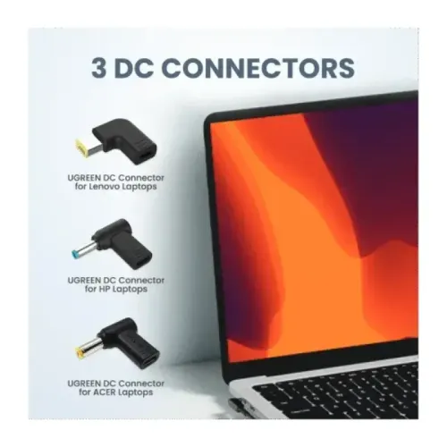 UGREEN X377 (35063) 67W Power Adapter is a versatile and high-performance charging solution engineered to replace multiple laptop adapters and power a wide variety of devices with one compact unit. Built with advanced GaN (Gallium Nitride) technology, it delivers up to 67 W of fast charging power with improved efficiency, reduced heat generation, and a much smaller form factor compared with conventional chargers — making it ideal for travel, office, and home use. The adapter includes a USB-C Power Delivery output that supports multiple voltage profiles (from 5 V up to ~20 V) for fast charging of USB-C laptops, tablets, and smartphones, and it comes with three interchangeable DC connectors (for Lenovo, HP, Acer and similar laptops) that broaden compatibility with legacy devices. With wide device support — from MacBook Air and USB-C notebooks to phones and tablets — it automatically negotiates the optimal power delivery for each device and can charge a MacBook Air 13″ to up to ~70 % in about 60 minutes on a full-speed profile. The adapter incorporates multiple safety protections, including safeguards against over-current, over-voltage, short-circuit and overheating, ensuring safe, reliable charging for your devices. Its universal 100–240 V input and compact portable design make it especially travel-friendly, and the included USB-C to DC cable with multiple tip sizes eliminates the need to carry different laptop chargers.