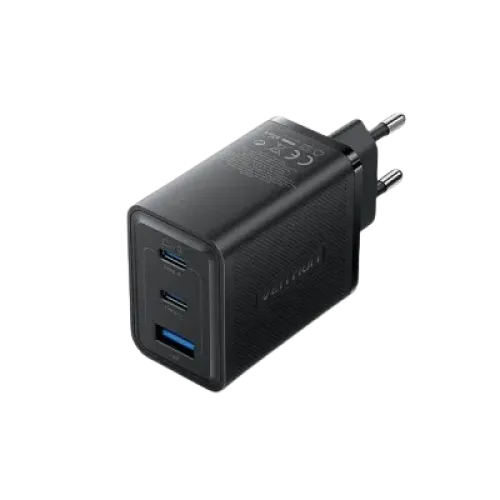 The Vention FERB0-EU 3-Port 65W GaN Charger is a premium, next-generation charging device designed to meet the power demands of today’s multi-device lifestyle. Engineered with advanced GaN (Gallium Nitride) technology, this charger ensures high efficiency, compact size, and low heat generation while delivering rapid and stable power output. With a maximum output capacity of 65W, it can quickly charge laptops, smartphones, tablets, and other USB-powered devices simultaneously, making it ideal for both personal and professional use. This Vention FERB0-EU 65W VENTION GaN fast charger features two USB-C ports and one USB-A port, offering universal compatibility across a wide range of devices. Each USB-C port supports PPS, PD 3.0, QC 3.0, FCP, AFC, and Apple 2.4A protocols, allowing fast charging for MacBooks, iPads, Samsung Galaxy devices, iPhones, and more. The USB-A port supports QC 3.0, SCP, FCP, AFC, and Apple 2.4A protocols as well, ensuring legacy device support without compromising speed . The output power is intelligently distributed when multiple ports are used. For example, USB-C1 + USB-C2 delivers 45W + 20W, USB-C1 + USB-A gives 45W + 18W, and using all three ports provides a combined 45W + 15W output. This makes multitasking more efficient, allowing users to charge a laptop while also powering a phone and tablet . Designed with safety in mind, the Vention FERB0-EU PD Fast charger’s PC shell is UL94-V0 rated for flame resistance, ensuring long-term durability and safe use. Its compact, travel-friendly form factor supports 100-240V input, making it perfect for international travel. If you're looking for a reliable, high-speed, multi-port USB-C GaN charger, the Vention FERB0-EU Type C offers the ideal blend of performance, safety, and portability.
